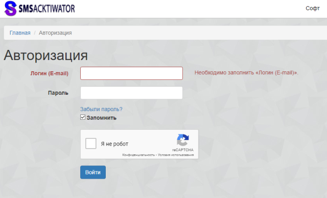 1. Перейдите на сайт https://smsak.org/ и войдите в свой аккаунт или создайте новый, указав адрес электронной почты и пароль.
